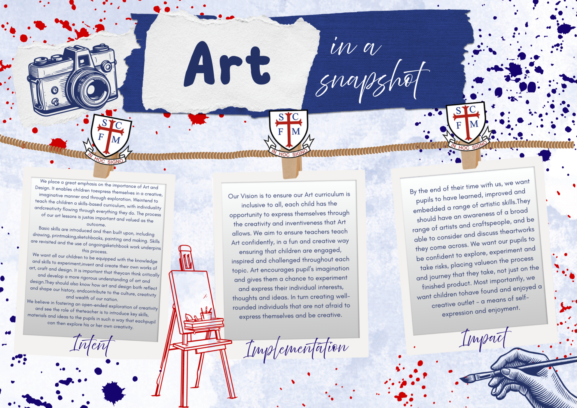 In Art, children have the opportunity to explore lots of different materials and techniques, from drawing with pencils and charcoal to painting and using mixed media. Their artwork is often linked to the class topic, helping them bring their learning to life in creative ways. Over the half term, they develop their skills, experiment with ideas and enjoy expressing themselves through colour, shape and texture. It’s a chance to be imaginative and proud of their artistic creations!