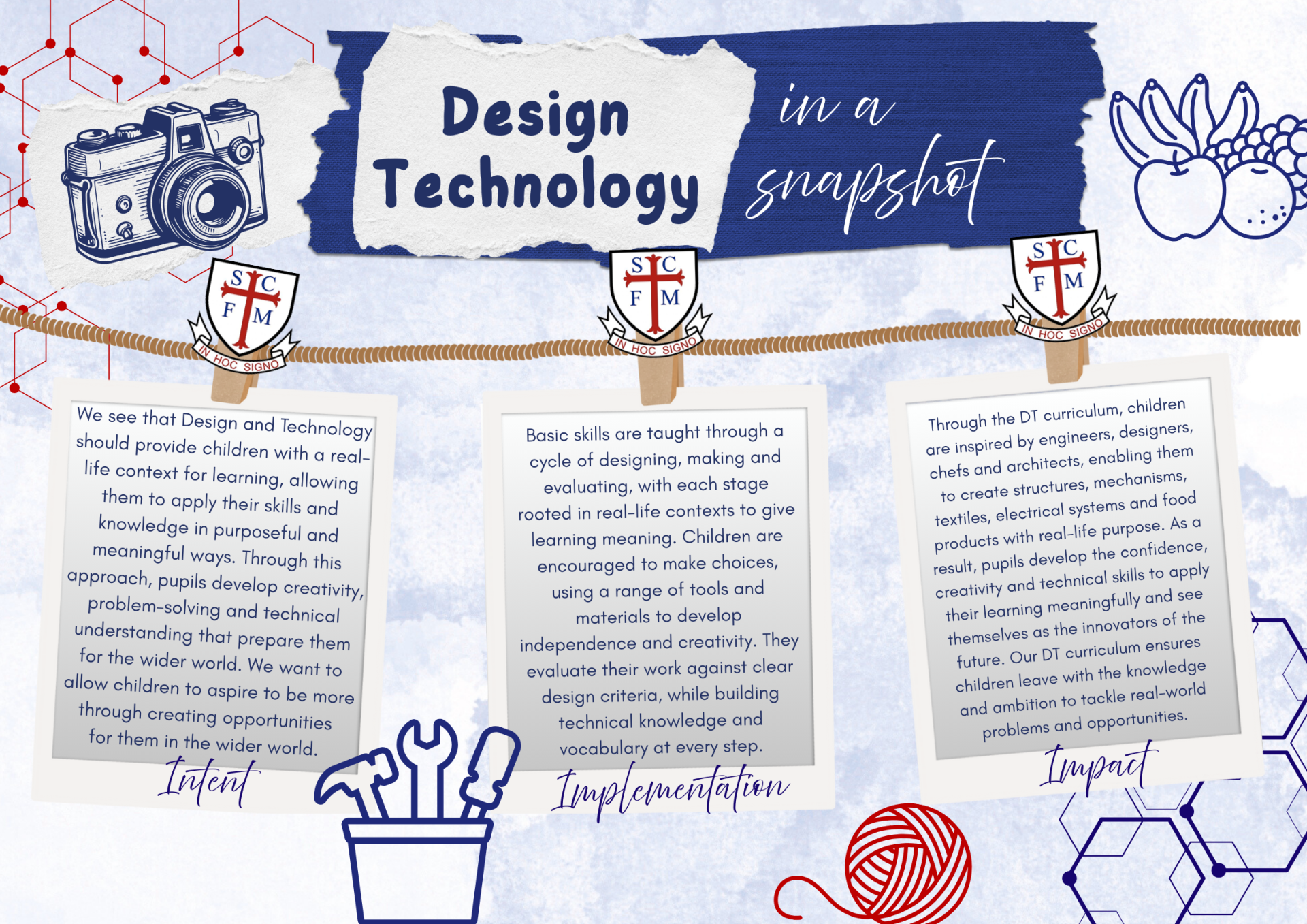 In Design and Technology, children get the chance to be creative and hands-on! Over the half term, they learn how to design, plan, make and then evaluate their own project. They enjoy exploring and working with different materials, from paper and card to fabric and wood, and even have a go at learning simple sewing skills. It’s all about trying out ideas, problem-solving and being proud of something they’ve created themselves.